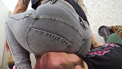 This guy was slow and the mistress did not like what he did. She wanted him to try his best to change his slow habits but he did not seem to understand her or to take into consideration what she deemed important. So she used her jeans to facesit him and make him realize that he had to change if he was to avoid any issues with her. He learned his lesson.